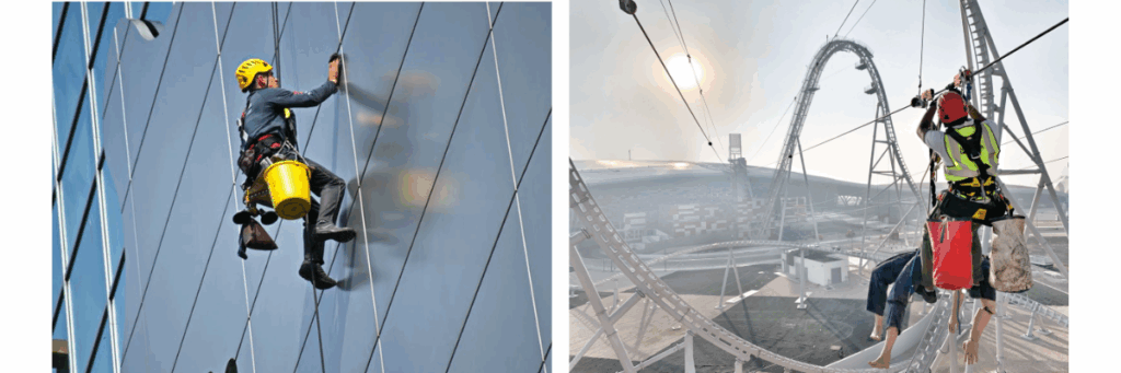 کار روی دکل و هرس درختان: این فعالیتها نیازمند هارنسهایی با نقاط اتصال جانبی (Positioning D-rings) برای ثابت کردن موقعیت و کار با دو دست آزاد هستند.