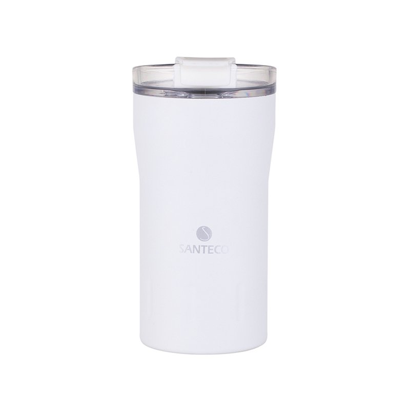 Santeco Kariba Thermal Tumbler 350 ml یکی از جذابترین محصولات مجموعه ماگهای حرارتی Santeco است. این ماگ با استفاده از فولاد ضدزنگ 18/8 (Food-grade) و ساختار دوجداره خلأ، نوشیدنیهای گرم را تا ۶ ساعت و نوشیدنیهای سرد را تا ۱۲ ساعت در دمای مناسب حفظ میکند. درب ماگ دارای دو واشر سیلیکونی است که با طراحی لولا و قفل ایمن، کاملاً ضدنشت عمل میکند. این درب با یک دست باز یا بسته میشود و در خودرو یا کیف کاربردی و ایمن است. پوشش پودری بدنه، علاوه بر ظاهر شیک، باعث جلوگیری از تعریق و بهبود چسبندگی میشود. تمام قطعات پلاستیکی ماگ فاقد BPA هستند و مطابق با استاندارد غذایی بوده و ایمن برای نوشیدن هستند. ابعاد استاندارد این ماگ (۸٫۸ × ۷٫۷ × ۱۵٫۹ سانتی متر) باعث میشود که بهراحتی در جای لیوان خودرو و کیف جا شود.