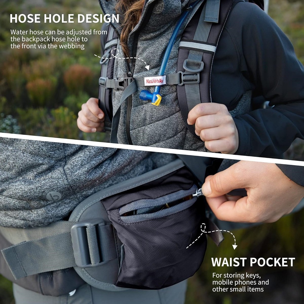 کولهپشتی نیچرهایک 70 لیتری دارای کاور ضدباران است که از تجهیزات شما در برابر بارش باران محافظت میکند. طراحی مقاوم و در عین حال سبک آن، این محصول را به یک گزینه عالی برای کوهپیماییهای چندروزه، سفرهای بکپکینگ و کمپینگ طولانی تبدیل کرده است.
