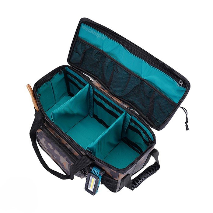 دیوارههای این ساک با فوم ضخیم تقویت شدهاند تا ضربههای ناگهانی را جذب کرده و از تجهیزات داخل در برابر فشار محافظت کنند. بندهای حمل جانبی، تسمههای مقاوم و دستگیرههای چندگانه امکان حمل راحت ساک را فراهم میکند؛ هم به صورت دستی و هم احتمالاً به صورت دو نفره برای بار سنگین. در قسمت بدنهی ساک جیبهای توری تعبیه شدهاند تا لوازمی که نیاز به دسترسی سریع دارند در آنها قرار بگیرد. همچنین قسمت بالایی ساک ممکن است دارای بند یا تسمههایی باشد که بتوانی تجهیزات سبک مثل زیرانداز یا پتوی مسافرتی را روی آن ببندی.