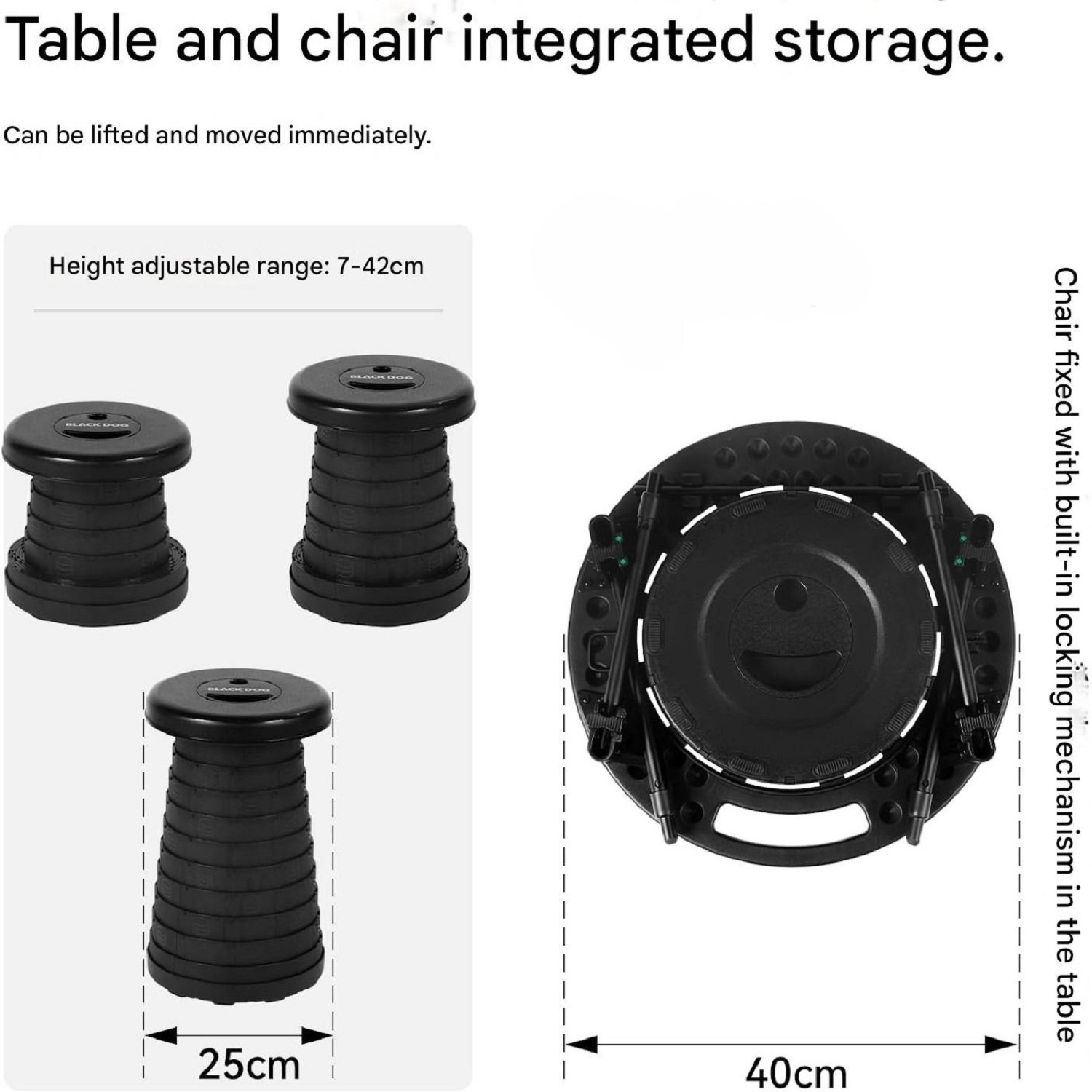 مهمترین ویژگی این ست، پایداری فوقالعاده و تحمل وزن بالای آن است. صندلی این مجموعه به تنهایی میتواند تا 200 کیلوگرم وزن را تحمل کند، که نشان از استحکام بالای ساختار آن دارد. جنس صندلی از ترکیب PP و TPR است و جنس میز ترکیبی از PE، آلومینیوم، آهن و TPR میباشد. همچنین میز این ست دارای قابلیت تنظیم ارتفاع است تا بتوان آن را برای کاربریهای مختلف تنظیم کرد. وزن سبک این اجزا (میز: 1.55کیلوگرم و صندلی: 1.05 کیلوگرم)، حمل آسان و استفاده راحت در هر محیطی از پارک و پیکنیک گرفته تا کوهستان را تضمین میکند.
