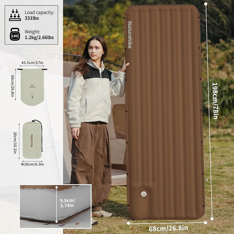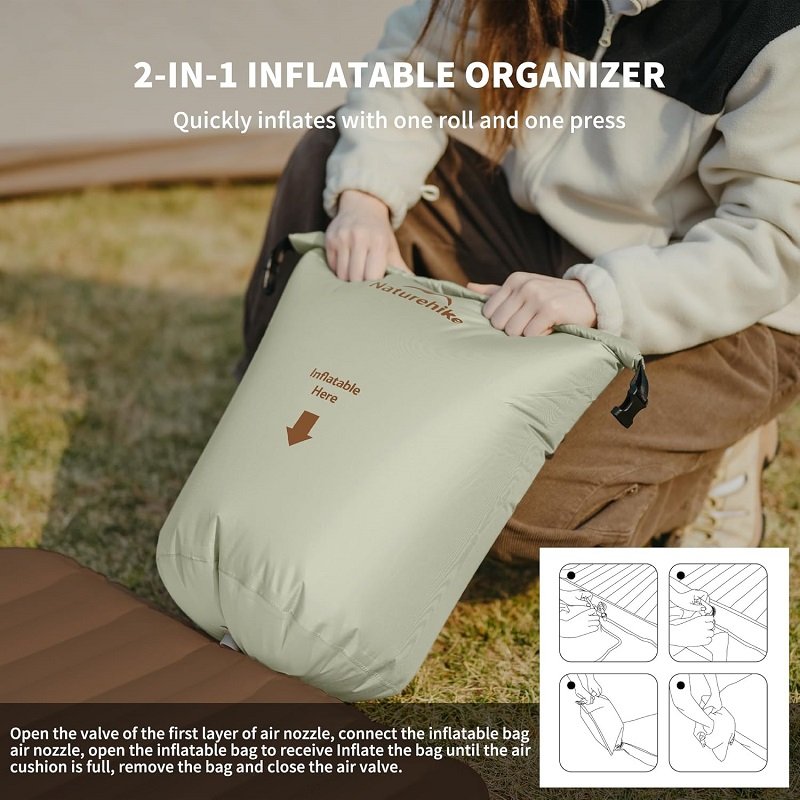 تشک بادی کمپینگ Naturehike Inflatable Sleeping Pad با طراحی هوشمندانه ستونهای لانهزنبوری دوطرفه و ضخامت 9.5 سانتیمتر، سطحی ایستا و راحت فراهم میکند که حتی روی زمینهای ناهموار نیز احساس خواب روی تخت را القا میکند. این تشک با استفاده از پارچه نایلون TPU پرسشده پیشرفته و دریچه دوبل هوا، نفوذ رطوبت را کاهش داده و بادگیری و خالیکردن سریع را ممکن میکند. با وزن حدود 1.2 کیلوگرم و قابلیت جمعشدن در کیف حمل فشرده، این تشک حمل بسیار آسانی دارد. سیستم اتصال چندتکه (Splicable) به شما امکان میدهد چند تشک را بهصورت زوج یا چند نفره با هم متصل کنید و یک سطح خواب بزرگتر بسازید که آن را برای کمپ گروهی نیز مناسب میسازد. گزینههای باد شدن متنوع شامل پمپ پا، پمپ دستی یا پمپ برقی بوده و برای شرایط مختلف قابل استفاده است. این محصول انتخابی عالی برای سفر، کمپینگ، کوهنوردی محسوب میشود.
