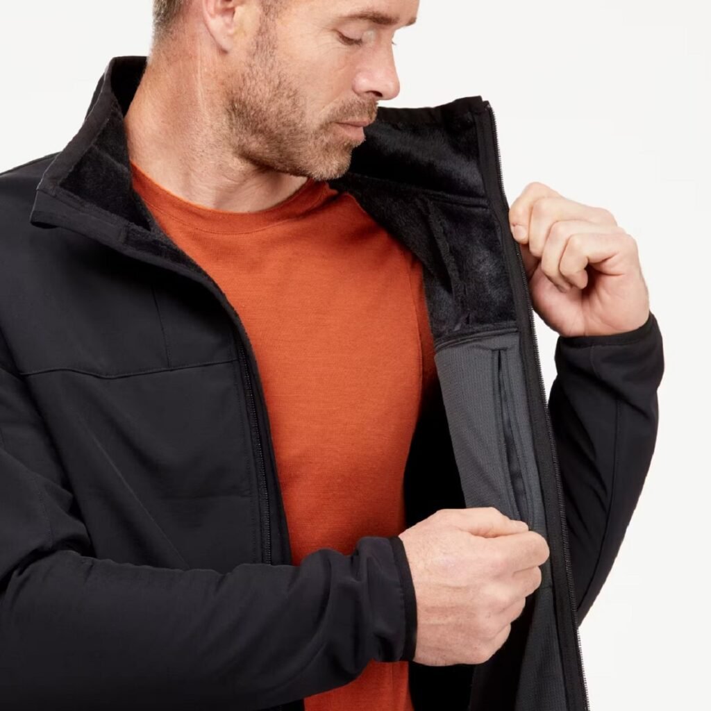جنس بیرونی کاپشن سافتشل فورکلاز از پلیاستر مقاوم با خاصیت باد گیر و آب گریز (Water Repellent) تولید شده تا در هوای نامساعد، رطوبت را دفع کند و بدن شما خشک بماند. در داخل کاپشن، از آستر پولار (فِلیس) نرم و گرم استفاده شده که دمای بدن را حفظ کرده و در عین حال سبک و تنفس پذیر باقی می ماند؛ بنابراین در فعالیت های طولانی مانند کوهپیمایی یا پیادهروی، احساس راحتی و آزادی خواهید داشت.