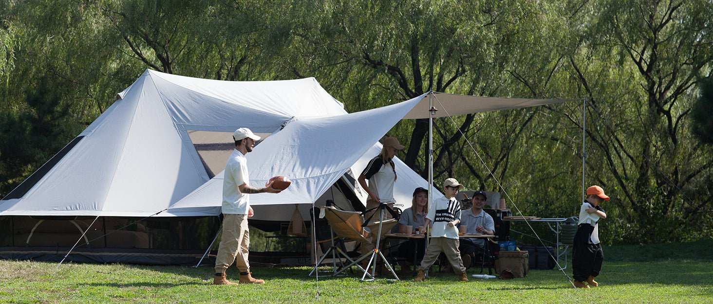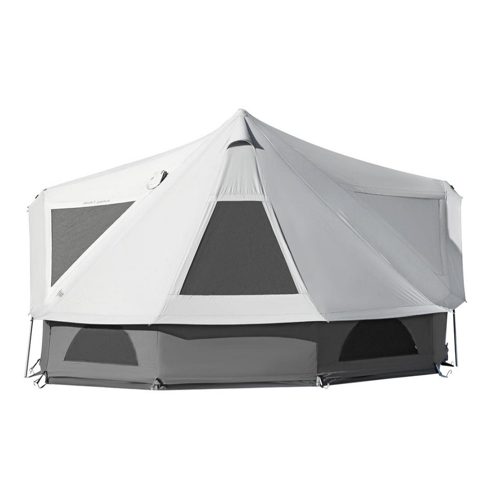 چادر KingCamp Khan Palace Glamping Tent طراحی ویژهای دارد که محیطی شبیه به یک کاخ کوچک در طبیعت خلق میکند. با ظرفیت 8 تا 10 نفر، این چادر فضای مناسب برای خانوادههای بزرگ یا گروههای دوستانه را فراهم میکند تا تجربه کمپینگ بهشکلی شیک و جمعی کامل شود.