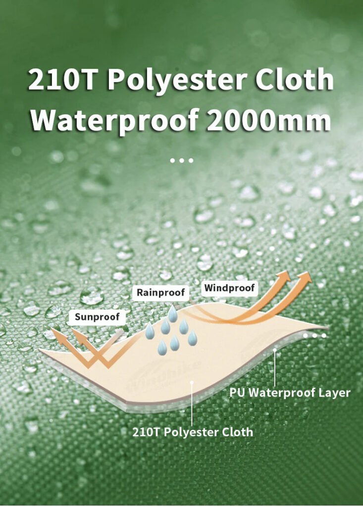 مواد پارچهای: پلیاستر ۲۱۰T با پوشش مقاوم – مقاومت در برابر نفوذ آب تا ۳۰۰۰ mm