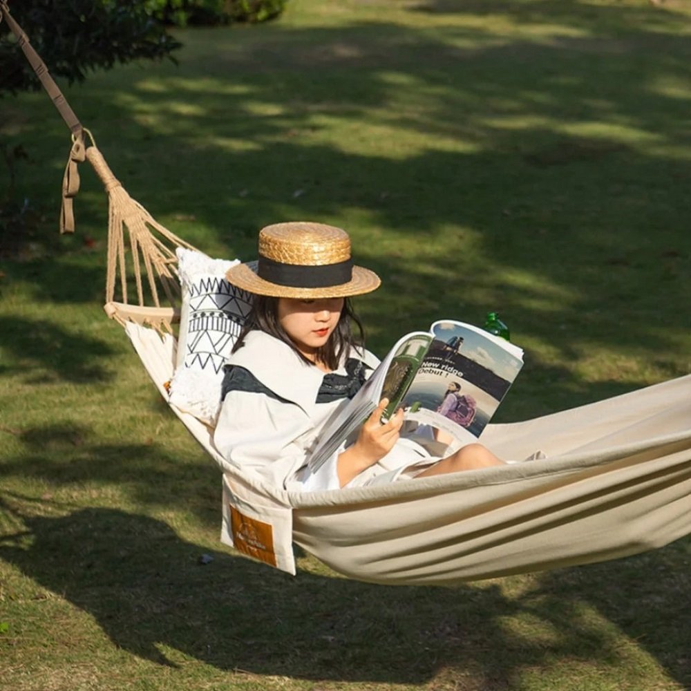 این ننو مجهز به روکش باران، طنابهای مستحکم، کارابین، جیب کوچک نگهدارنده و کیف حمل است تا در هر موقعیت آبوهوایی و مکانی قابل استفاده باشد. با ابعاد ۳۰۰×۹۰ سانتیمتر فضای کافی برای استراحت کامل یک نفر فراهم میکند و رنگبندی طبیعی آن شامل کرم، سبز و قهوهای است که جلوهای هماهنگ با محیط طبیعت دارد.