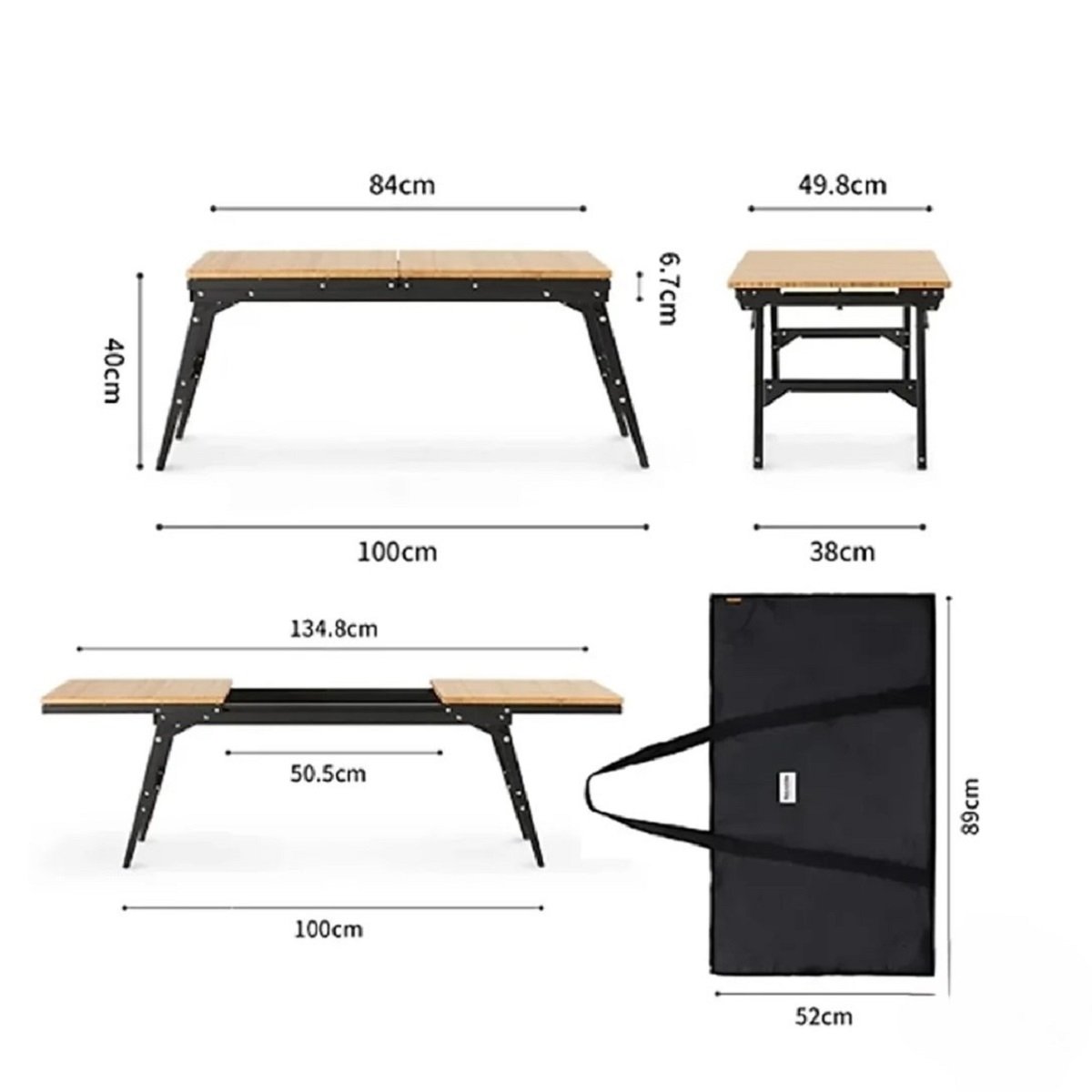 ابعاد باز شده این میز 134.8 × 49.8 × 40 سانتی متر، فضای سخاوتمندانهای را برای آماده سازی غذا، پخت و پز یا سرو فراهم می کند. با وجود وزن 8.7 کیلوگرم، طراحی تاشو هوشمندانه آن، ابعاد را به حالت بسته 84 × 49.8 × 6.7 سانتی متر کاهش میدهد و حمل آن با کیف نگهدارنده همراه از پارچه آکسفورد 630D بسیار آسان است.