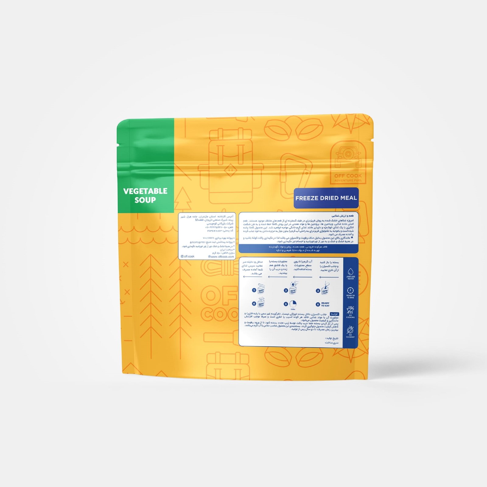 سوپ سبزیجات انجمادی OFFCOOK با بستهبندی 150 گرم، سوپ آماده و مغذی است که سفر، کمپینگ یا مواقعی که وقت کمی داری را سادهتر میکند. وقتی آب جوش را به آن اضافه کنی، فقط در چند دقیقه سوپ گرم با طعم طبیعی سبزیجاتی مثل هویج، پیاز، سیبزمینی و ادویه ملایم به دست میآوری. این محصول انتخاب خوبی برای کسانی است که دنبال غذایی سبک، کمحجم و با ماندگاری بالا هستند، بدون اینکه کیفیت یا مزه را قربانی کنند.