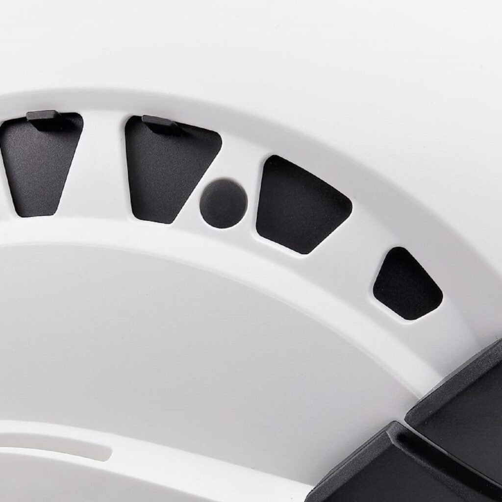 کلاه VERTEX VENT همچنین دارای بند چانه با قابلیت تنظیم دو وضعیت (دو قدرت) است که بسته به محیط کار (ارتفاع یا زمین) میتونی آن را تنظیم کنی؛ این ویژگی باعث کاهش خطر افتادن کلاه یا خفگی در شرایط خاص میشود.