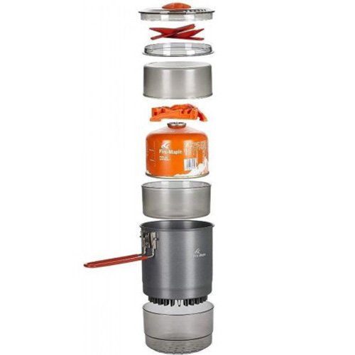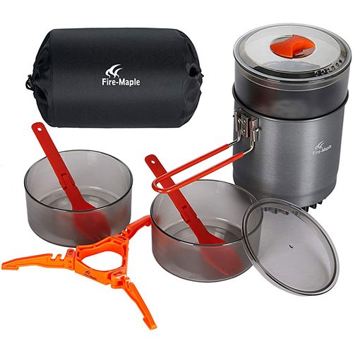 متعلقات : دارای تخته برش، بخارپز، قابلمه، دو کاسه، سه پایه کپسول گاز، درب کاسه، دو اسپورک تاشو، درب قابلمه و کیسه حمل