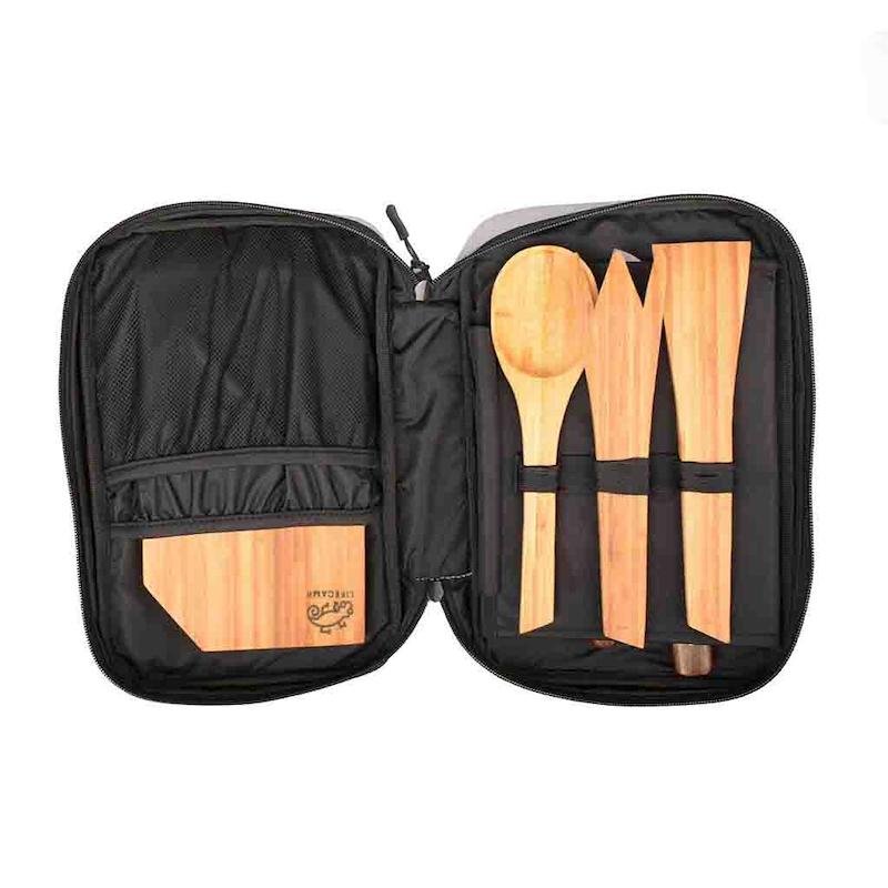 مجموعه کامل آشپزی: شامل ۲ چاقو، قاشق، چنگال، تخته برش و کیف حمل