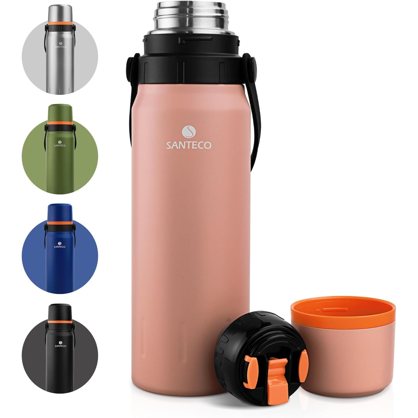 این فلاسک چندمنظوره Santeco Geilo برای نگهداری دمای نوشیدنیها طراحی شده و از فولاد ضدزنگ 304 دوجداره با عایق خلأ تشکیل شده است. پوشش داخلی از مس جهت افزایش توان عایق افزود شده، که باعث حفظ دمای نوشیدنی گرم تا ۱۲ ساعت و سرد تا ۲۴ ساعت میشود. درپوش بهعنوان لیوان مورداستفاده قرار میگیرد و دارای دهانه عریض برای سهولت ریختن و تمیزکاری است. درب اهرمی آن ضدنشت بوده و برای استفاده در ماشین، سفر و ورزش کاملاً مناسب است .