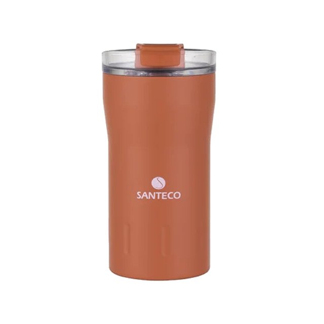 Santeco Kariba Thermal Tumbler 350 ml یکی از جذابترین محصولات مجموعه ماگهای حرارتی Santeco است. این ماگ با استفاده از فولاد ضدزنگ 18/8 (Food-grade) و ساختار دوجداره خلأ، نوشیدنیهای گرم را تا ۶ ساعت و نوشیدنیهای سرد را تا ۱۲ ساعت در دمای مناسب حفظ میکند. درب ماگ دارای دو واشر سیلیکونی است که با طراحی لولا و قفل ایمن، کاملاً ضدنشت عمل میکند. این درب با یک دست باز یا بسته میشود و در خودرو یا کیف کاربردی و ایمن است. پوشش پودری بدنه، علاوه بر ظاهر شیک، باعث جلوگیری از تعریق و بهبود چسبندگی میشود. تمام قطعات پلاستیکی ماگ فاقد BPA هستند و مطابق با استاندارد غذایی بوده و ایمن برای نوشیدن هستند. ابعاد استاندارد این ماگ (۸٫۸ × ۷٫۷ × ۱۵٫۹ سانتی متر) باعث میشود که بهراحتی در جای لیوان خودرو و کیف جا شود.