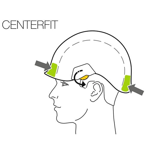 - دارای سیستم CENTERFIT که به لطف دو چرخ تنظیم جانبی، کلاه ایمنی را روی سر ثابت میکند.