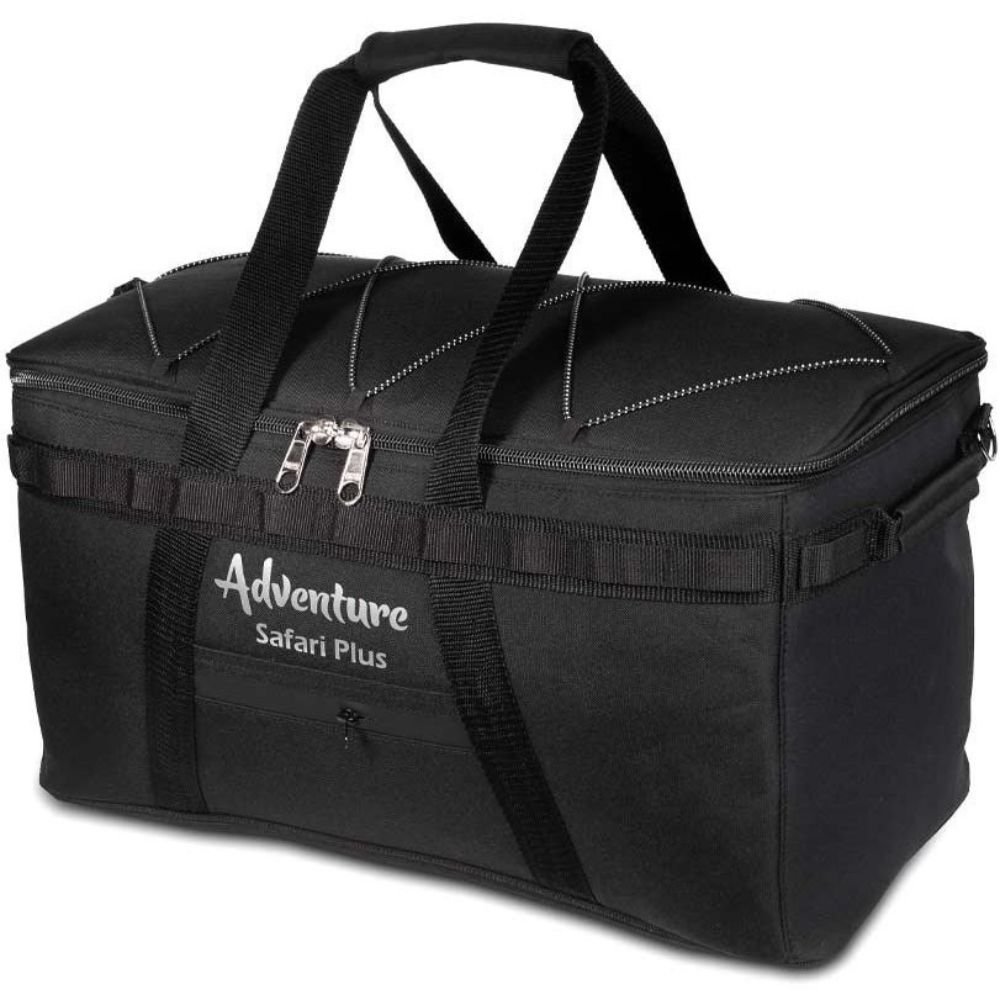ساک سافاری پلاس ادونچر Adventure Safari Plus bag ساخته شده از برزنت بسیار مقاوم، انتخابی مناسب برای نظم بخشیدن وسایل شما در حین سفر. ساختار چهار لایه (آستر و دو لایه فوم و پارچه رویه اصلی)، طراحی جیب و دیزی چین دور تا دور کیف، قرار دادن بند کشی استاپردار روی درب جهت نگهداری فلاسک، زیرانداز یا سایر تجهیزات، این کیف را به وسیلهای بسیار کاربردی برای سفر تبدیل کرده است.