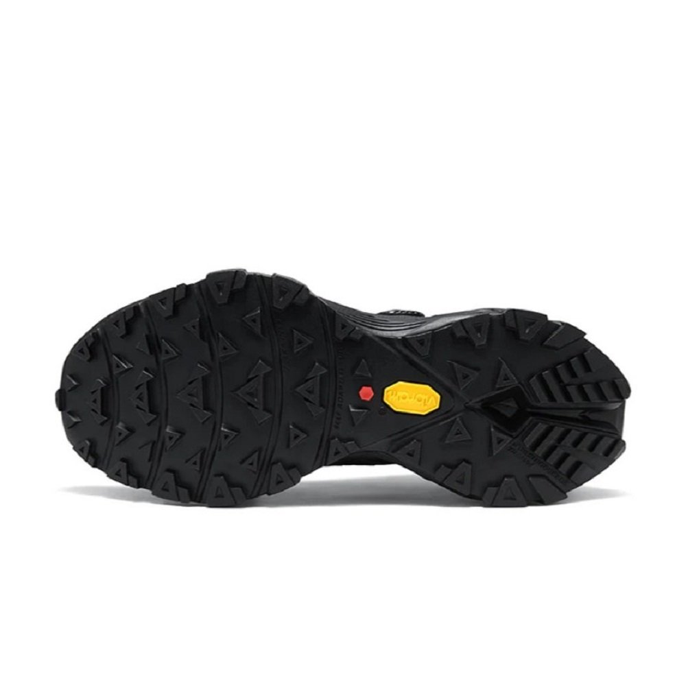 زیره بیرونی Vibram Megagrip: طراحیشده برای چسبندگی بالا در سطوح خشک، مرطوب، سنگی یا گلآلود. آجهای چندجهته آن باعث کنترل بیشتر در سراشیبیها و سربالاییها میشود.