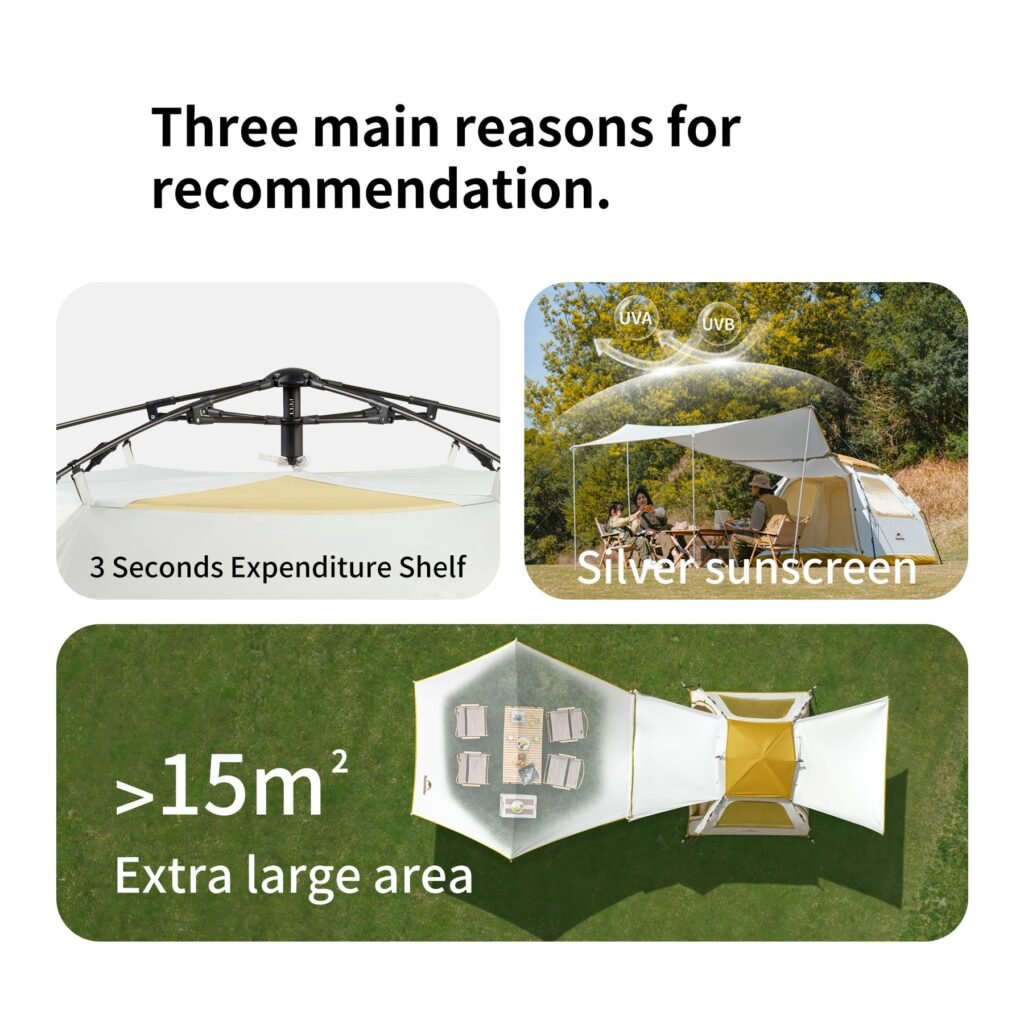 چادر Ango ES60 Quick-Opening Tent از نیچرهایک طراحی شده برای ماجراجویانی است که ارزش راحتی، دوام و عملکرد را میدانند. سیستم بازشدن فوری (pop-up) این چادر، نصب و جمعآوری آن را در عرض چند دقیقه ممکن میسازد—بدون نیاز به ابزار، وقت یا نیرو. فضای داخلی چادر حدود ۲۲۰ × ۱۸۰ × ۱۴۰ سانتیمتر است که بهراحتی برای ۲ تا ۳ نفر جا فراهم میکند و امکان خواب، استراحت و نگهداری وسایل را بهخوبی دارد.