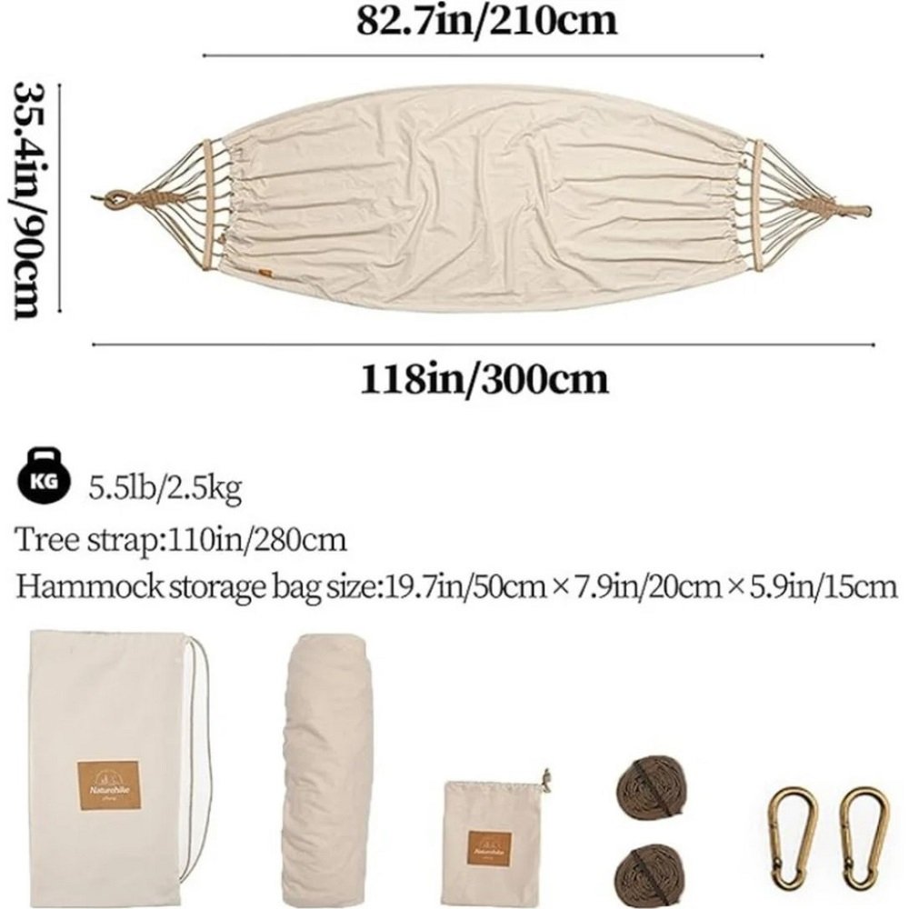 این ننو مجهز به روکش باران، طنابهای مستحکم، کارابین، جیب کوچک نگهدارنده و کیف حمل است تا در هر موقعیت آبوهوایی و مکانی قابل استفاده باشد. با ابعاد ۳۰۰×۹۰ سانتیمتر فضای کافی برای استراحت کامل یک نفر فراهم میکند و رنگبندی طبیعی آن شامل کرم، سبز و قهوهای است که جلوهای هماهنگ با محیط طبیعت دارد.