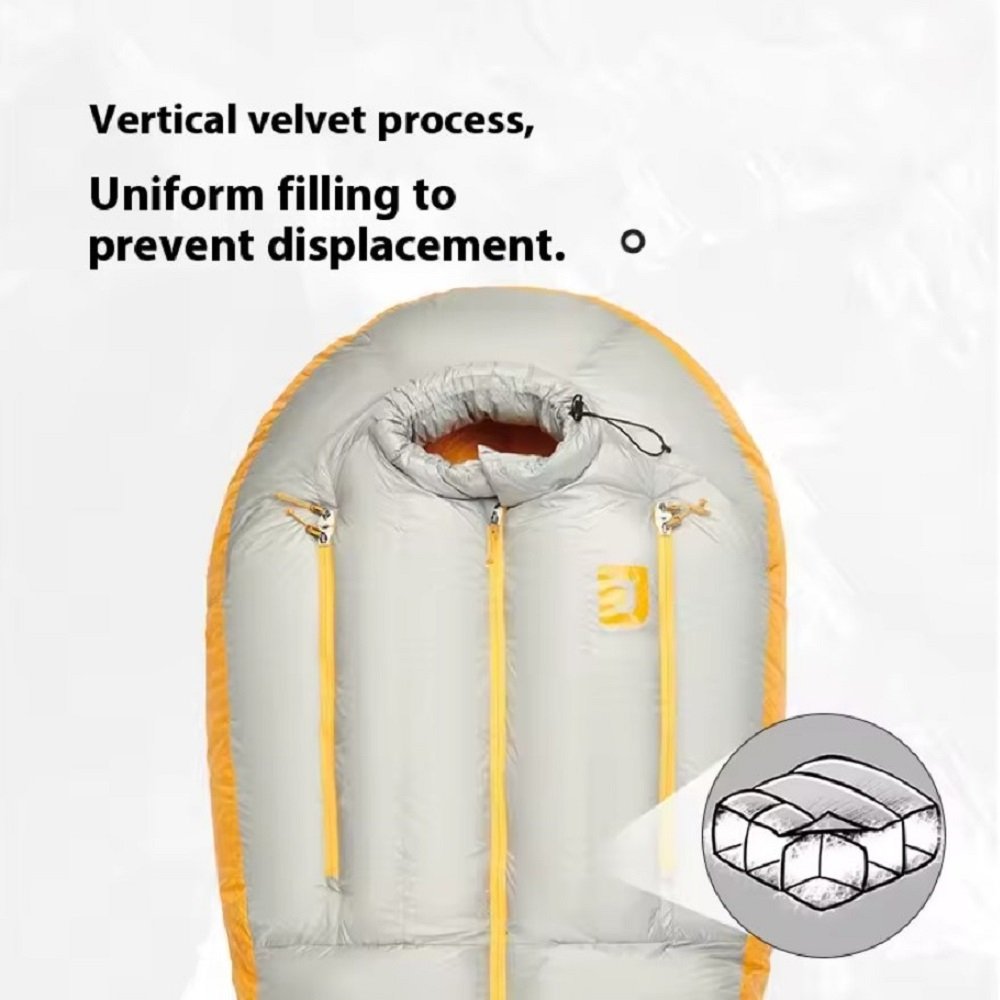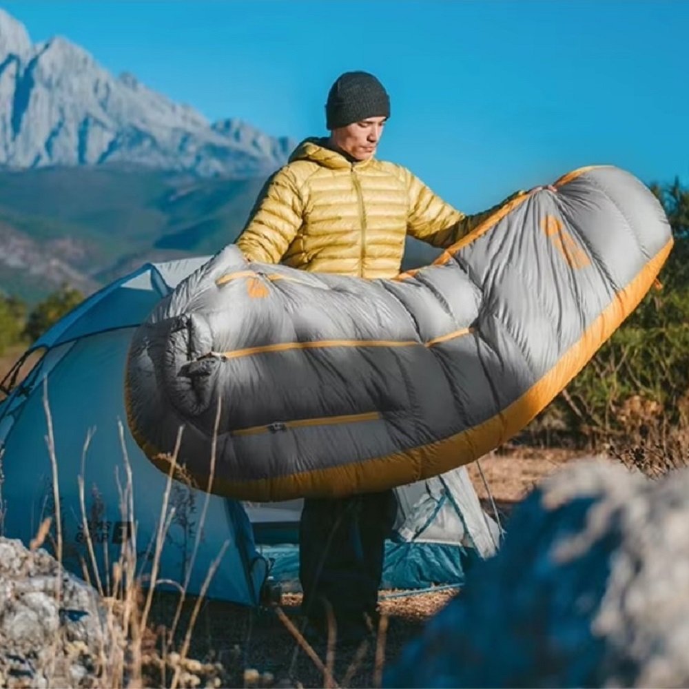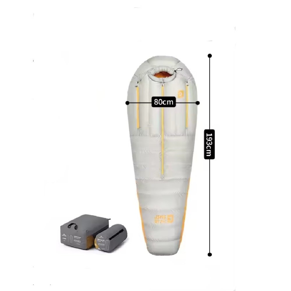 پرکننده این کیسهخواب از پَر غاز (Goose Down) با حجمپذیری (Fill Power) 750FP است که عایق حرارتی بسیار خوبی در ازای وزن پایین ارائه میدهد. لایه بیرونی آن از نایلون 20D Toray و لایه داخلی از نایلون 10D ساخته شده است که هر دو ضد نفوذ پَر هستند. این محصول برای استفاده در دماهای زیر صفر مناسب بوده و برای افزایش طول عمر و عملکرد، از زیپ YKK ضدگیر و سگکهای Duraflex در آن استفاده شده است.