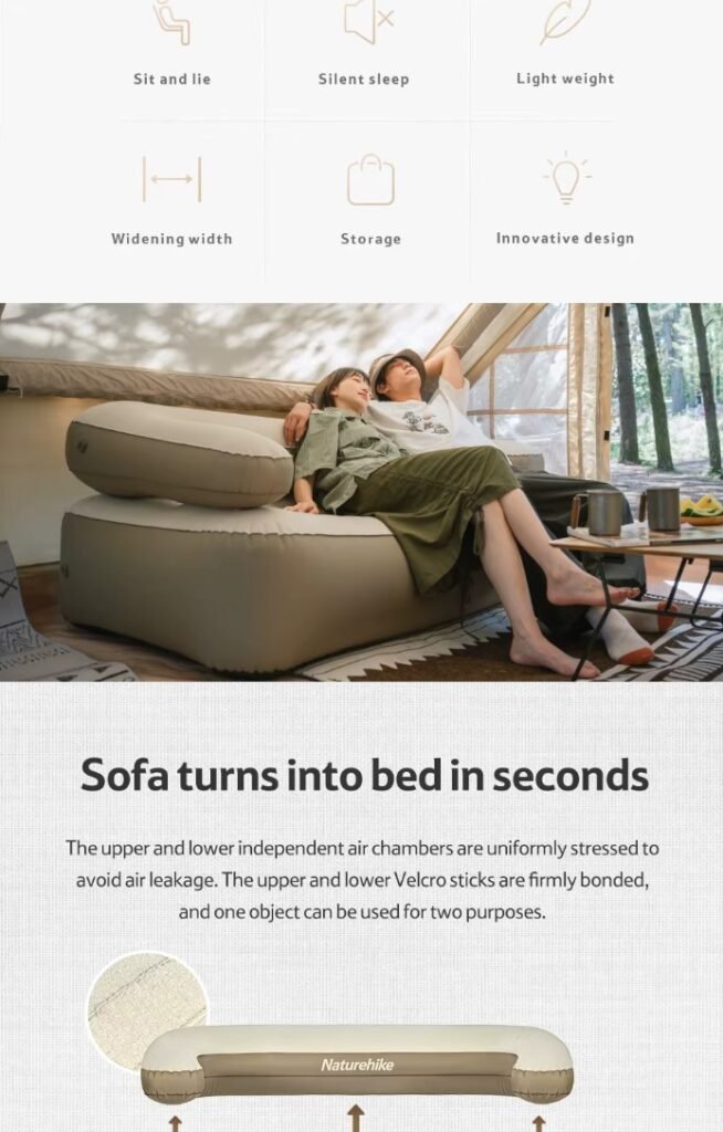 اگر به دنبال یک وسیلهی کاربردی، سبک و شیک برای ایجاد فضایی آرام و دلنشین در دل طبیعت یا حتی در محیط خانه هستید، این مبل بادی دو نفره Naturehike بهترین انتخاب برای شما خواهد بود.
